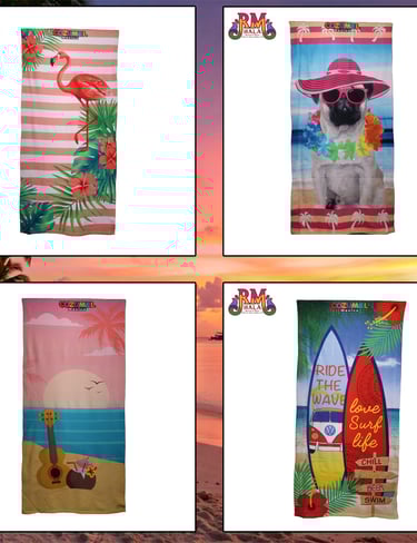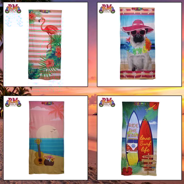Cada toalla destaca por sus colores intensos, su gran calidad y su impactante diseño que captura la esencia del Caribe y otros destinos. Perfectas para la playa, para regalo y como artículo de alta rotación en tiendas.
